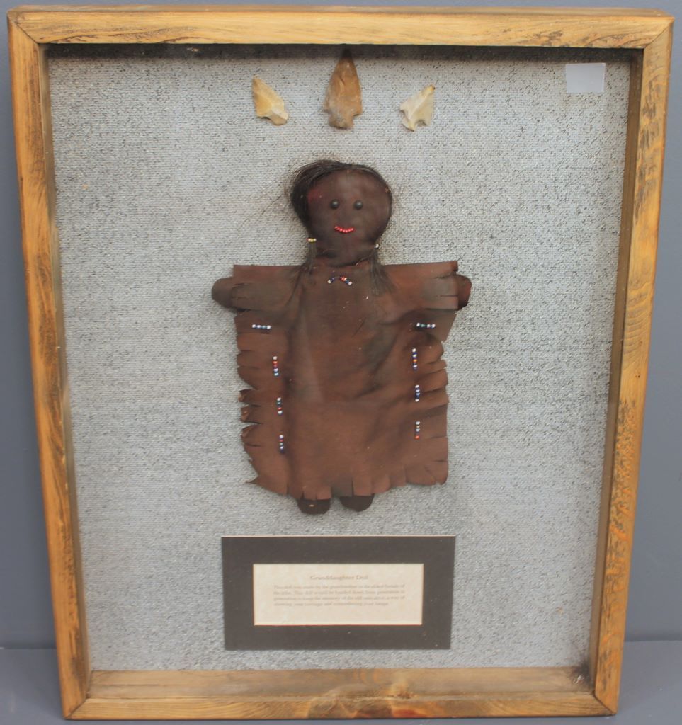 Replica Granddaughter Doll, this doll would have been made by grandmother and handed down from generation to generation. In glass frame; 16 3/8" w., 21" h. Replica Granddaughter Doll, this doll would have been made by grandmother and handed down from generation to generation. In glass frame; 16 3/8" w., 21" h.