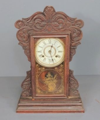 214 Ornate Victorian Style Oak Mantel Clock by New Haven