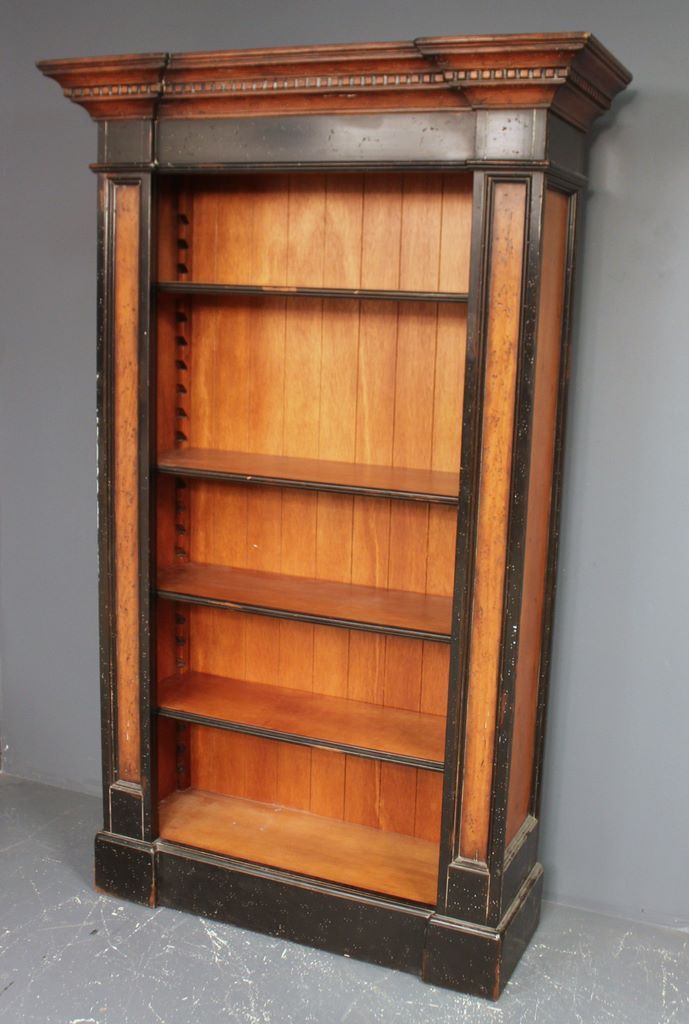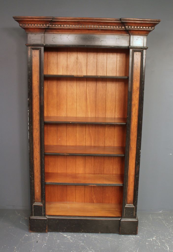 Contemporary Bookcase, with dental molding, five shelf bookcase, black painted trim; 83" h., 48" w., 14" d. Contemporary Bookcase, with dental molding, five shelf bookcase, black painted trim; 83" h., 48" w., 14" d.