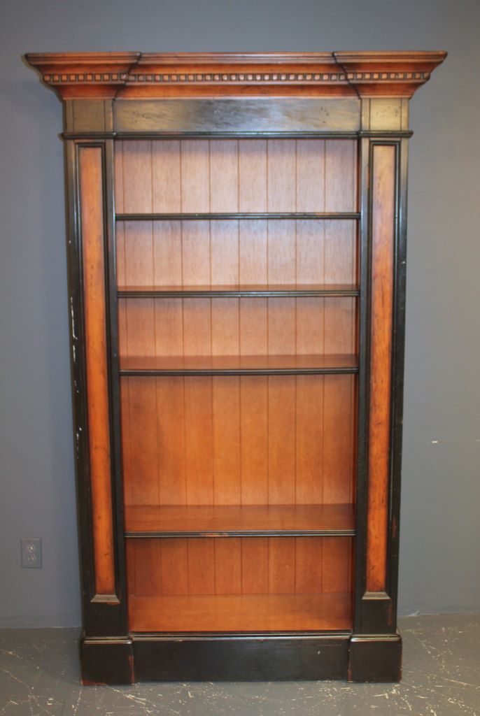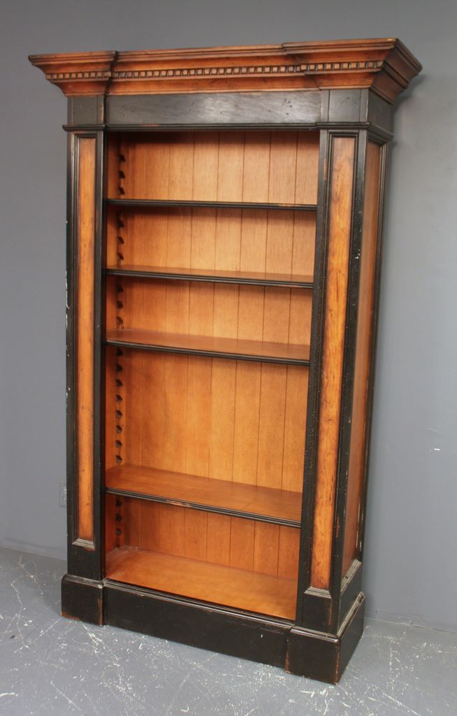 Contemporary Bookcase, with dental molding, five shelf bookcase, black painted trim; 83" h., 48" w., 14" d. Contemporary Bookcase, with dental molding, five shelf bookcase, black painted trim; 83" h., 48" w., 14" d.