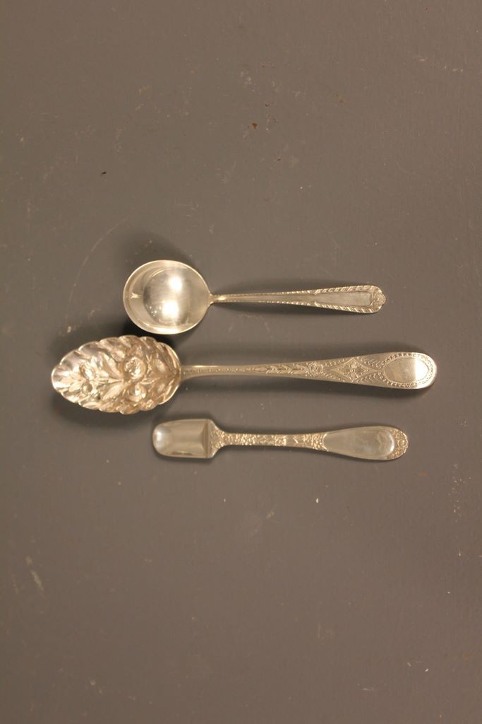 Three Pieces of Sterling, consisting of; English sterling sauce spoon 8 1/4" l., sterling gravy ladle 5" l., sterling stieff sugar scoop 5 1/2" l. Three Pieces of Sterling, consisting of; English sterling sauce spoon 8 1/4" l., sterling gravy ladle 5" l., sterling stieff sugar scoop 5 1/2" l.