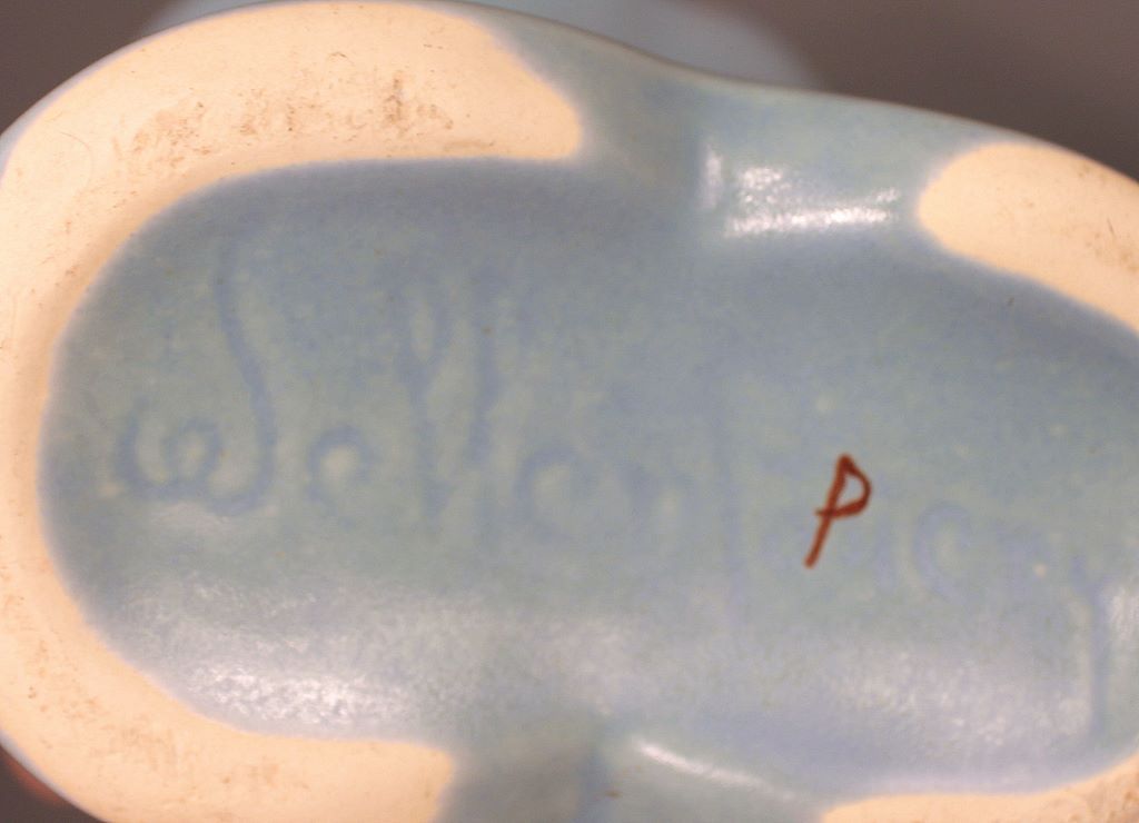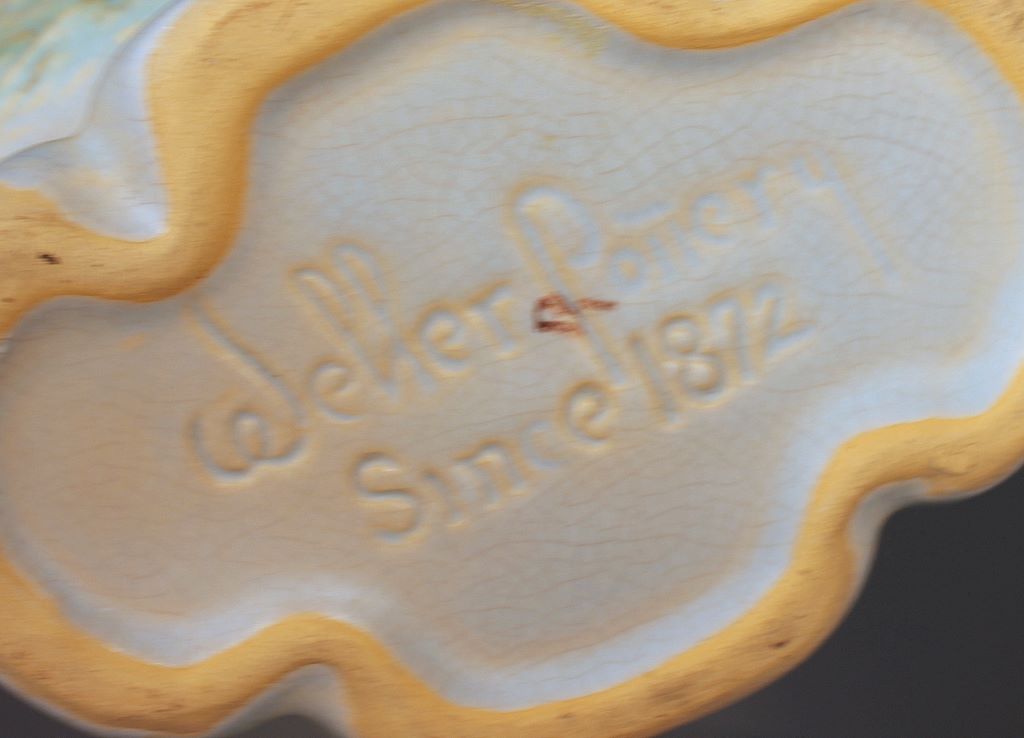 Three Pieces of Weller Pottery, one small blue Weller vase with white roses (cameo rose) 6 5/8" h., 5" w., small brown and pink "Dogwood" vase 6 1/2" h., 4" dia., Weller vase with hand painting of sail boat and trees 7 1/2" h., 7" w. Three Pieces of Weller Pottery, one small blue Weller vase with white roses (cameo rose) 6 5/8" h., 5" w., small brown and pink "Dogwood" vase 6 1/2" h., 4" dia., Weller vase with hand painting of sail boat and trees 7 1/2" h., 7" w.