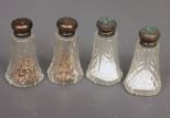 Four Cut Glass and Sterling Salt and Pepper Shakers. 2 1/2"h. Four Cut Glass and Sterling Salt and Pepper Shakers. 2 1/2"h.