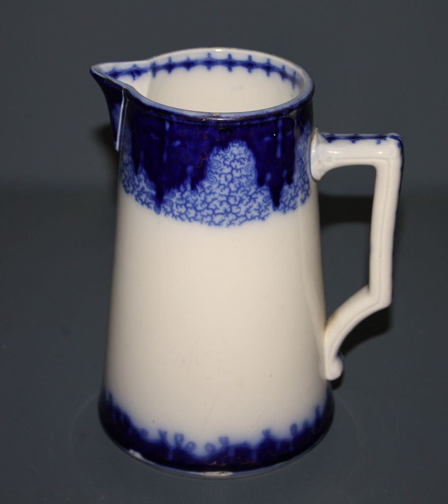 Flow Blue Stoneware Pitcher. 7 1/4"h. Flow Blue Stoneware Pitcher. 7 1/4"h.