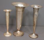 Three Sterling Vases, International Prelude trumpet vase 10" h., weighted sterling vase (some dents 9 1/2" h.) one Preiser sterling vase 8" h. Three Sterling Vases, International Prelude trumpet vase 10" h., weighted sterling vase (some dents 9 1/2" h.) one Preiser sterling vase 8" h.