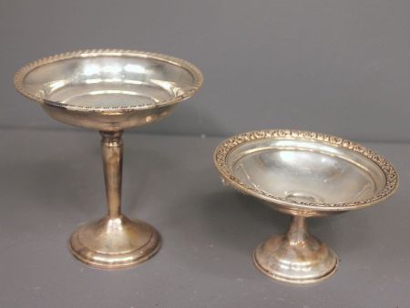 One Wallace sterling compote 5 3/8" dia., 3 1/2" h., and one weighted sterling compote 5 1/2" dia., 6" h. One Wallace sterling compote 5 3/8" dia., 3 1/2" h., and one weighted sterling compote 5 1/2" dia., 6" h.