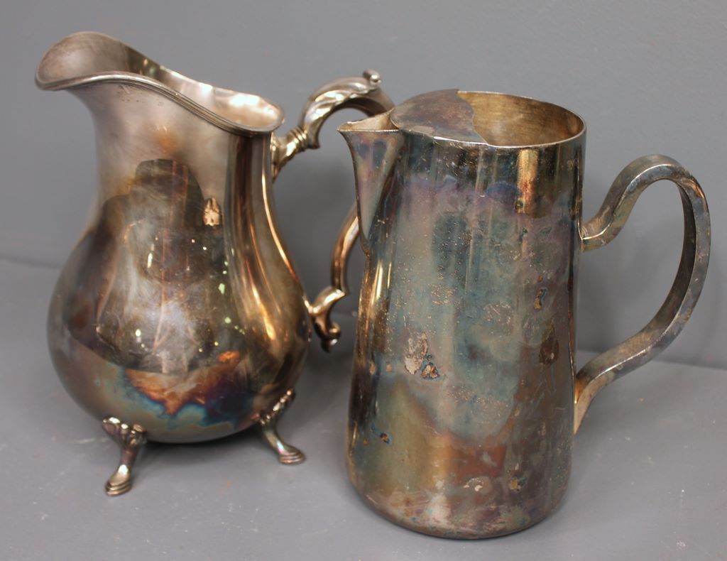 Two Silverplate Pitchers, one 9" h., one 8 1/4" h. Two Silverplate Pitchers, one 9" h., one 8 1/4" h.