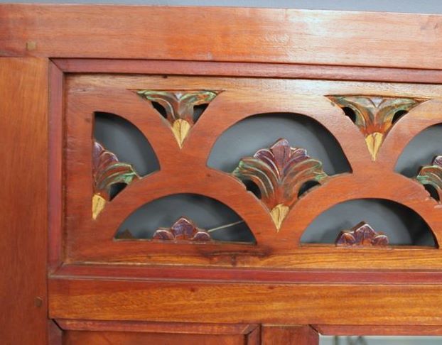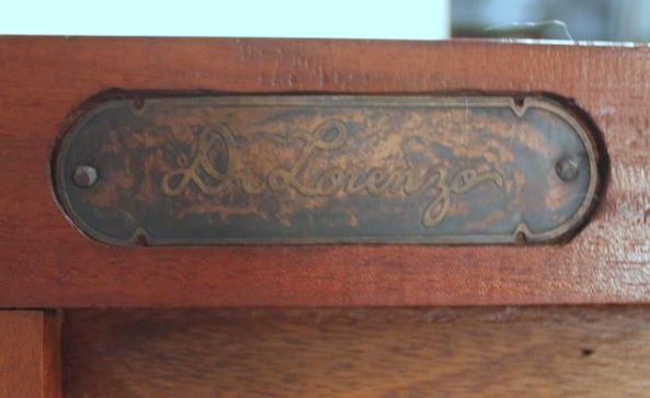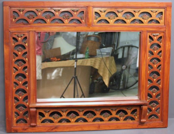 Hand carved 20th century mirror with bracket and shelf. Signature plaque on the back Di Lorenzo; 39" h., 49" w. Hand carved 20th century mirror with bracket and shelf. Signature plaque on the back Di Lorenzo; 39" h., 49" w.