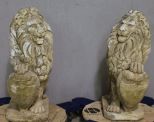 Pair of Concrete Lions; 28" h. Pair of Concrete Lions; 28" h.