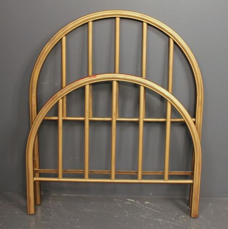 Painted gold mission style single iron bed; 40" h. Painted gold mission style single iron bed; 40" h.