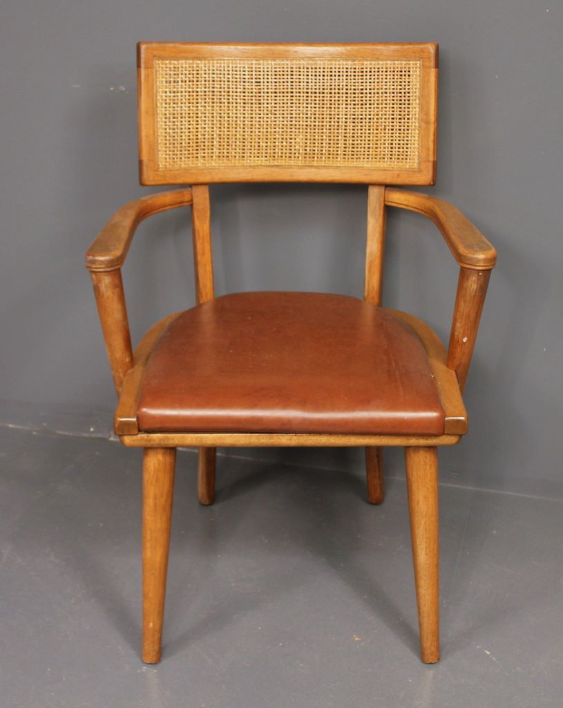 Danish Style Arm Chair with Cane Back, mid 20th century, highly collectible; 34" h., 24' w., 18" d. Danish Style Arm Chair with Cane Back, mid 20th century, highly collectible; 34" h., 24' w., 18" d.