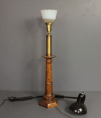 Contemporary Lamp, brass and wood; 37" h. Contemporary Lamp, brass and wood; 37" h.