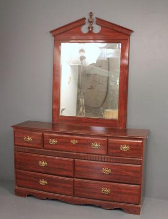 Cherry Wood Contemporary Dresser with dental mold mirror drawers and dental mold on base; 62" w., 16" d., 34" h. Cherry Wood Contemporary Dresser with dental mold mirror drawers and dental mold on base; 62" w., 16" d., 34" h.