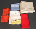 Vintage Napkins; five vintage hand embroidered napkins, two yellow napkins, six orange, four green, two flue and ten towels Vintage Napkins; five vintage hand embroidered napkins, two yellow napkins, six orange, four green, two flue and ten towels