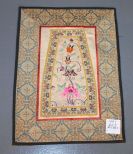 Silk Panel That is Embroidered in Oriental Style, with colorful butterflies, bugs and flowers, framed with silk and braiding; 7 3/8" w., 10 1/2" h. Silk Panel That is Embroidered in Oriental Style, with colorful butterflies, bugs and flowers, framed with silk and braiding; 7 3/8" w., 10 1/2" h.