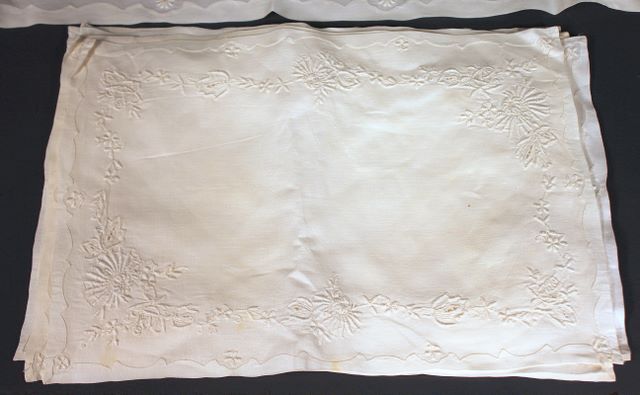 647 Linen Tablemats With Floral Embroidery and Linen Doily Description