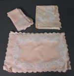 691 Set of Pink Tablemats and Napkins And A Dresser Top Doily Description
