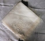 696 Extremely Fine White Linen and Lace Tablecloth Description
