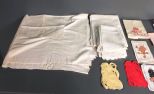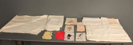 Box lot of linen with embroidery napkins and tablecloths, these have stains but are great pieces. Box lot of linen with embroidery napkins and tablecloths, these have stains but are great pieces.