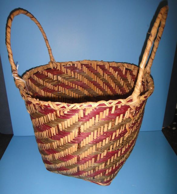 Large Two Handle Choctaw Basket, tan, maroon and dark brown (15 1/2" dia., 20" h.) Large Two Handle Choctaw Basket, tan, maroon and dark brown (15 1/2" dia., 20" h.)