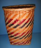 Choctaw Waste Basket in tan, yellow, red and black (9" dia., 13" h.) Choctaw Waste Basket in tan, yellow, red and black (9" dia., 13" h.)