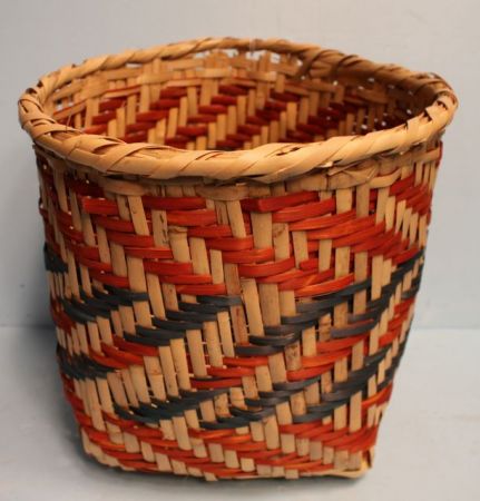 Choctaw Waste Basket in tan, orange and green (11" dia., 10 1/2" h.) Choctaw Waste Basket in tan, orange and green (11" dia., 10 1/2" h.)