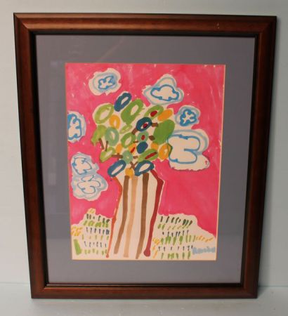 Watercolor of Trees, framed; 16" w., 19 1/2" h. Watercolor of Trees, framed; 16" w., 19 1/2" h.