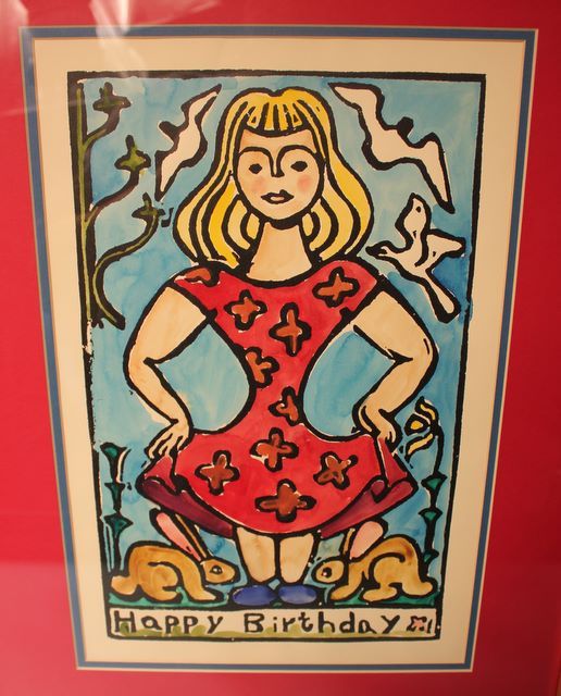 Walter Anderson Color silk screen "Happy Birthday", framed; 21 1/2" w., 27 1/2" h. Walter Anderson Color silk screen "Happy Birthday", framed; 21 1/2" w., 27 1/2" h.