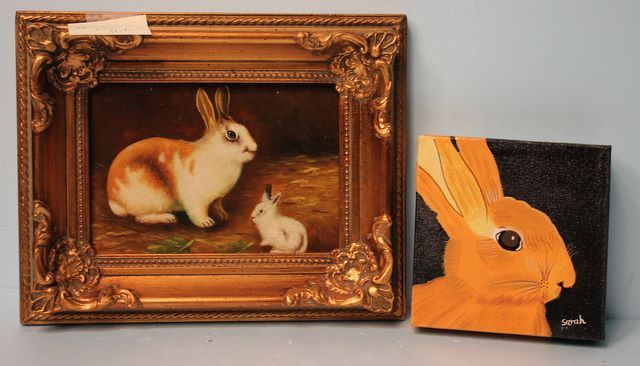 Two Oil on Canvas of Rabbits, one framed; 10" w., 9" h. Two Oil on Canvas of Rabbits, one framed; 10" w., 9" h.