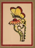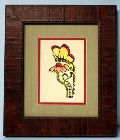 440 Walter Anderson Color Silk Screen of Butterfly and Daisy