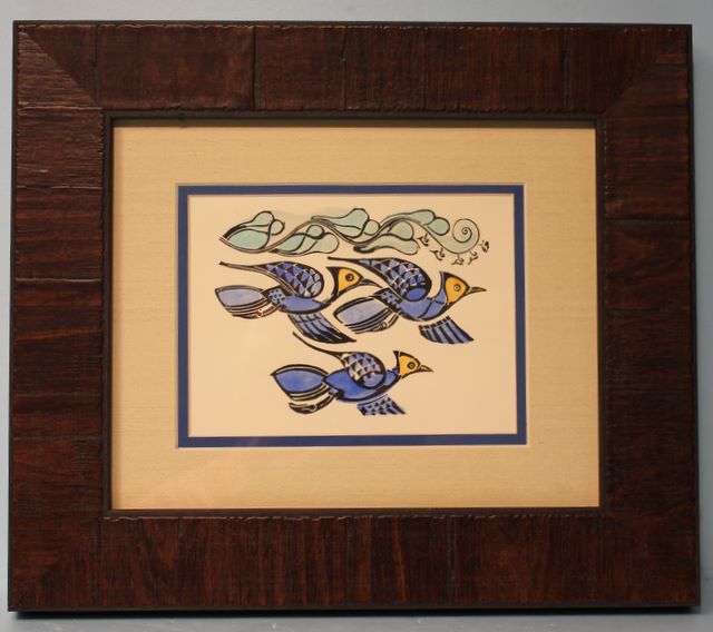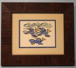 Walter Anderson Color silk screen of Three Blue Jays and Vine, framed; 13 1/2" w., 12" h. Walter Anderson Color silk screen of Three Blue Jays and Vine, framed; 13 1/2" w., 12" h.