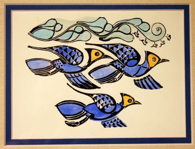441 Walter Anderson Color Silk Screen of Three Blue Jays and Vine