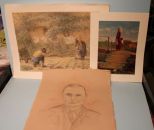 Two Unframed Prints and Pencil Drawing - Jackie; 18" w., 23" h. Two Unframed Prints and Pencil Drawing - Jackie; 18" w., 23" h.