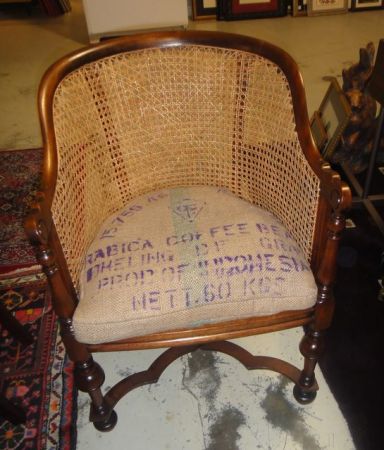 Vintage Walnut Barrel Back Chair with Cane; 34" h. Vintage Walnut Barrel Back Chair with Cane; 34" h.