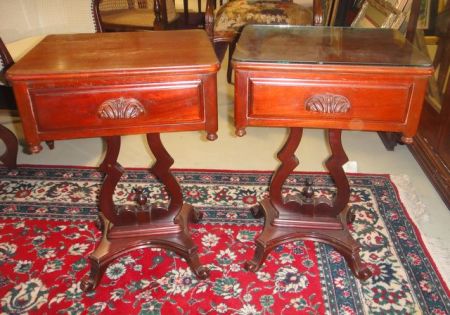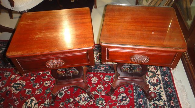 Pair of Bedside Tables, with single drawer, glass top; 26" h., 18" w., 16" d. Pair of Bedside Tables, with single drawer, glass top; 26" h., 18" w., 16" d.