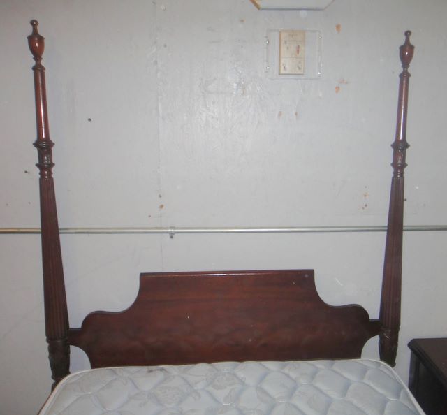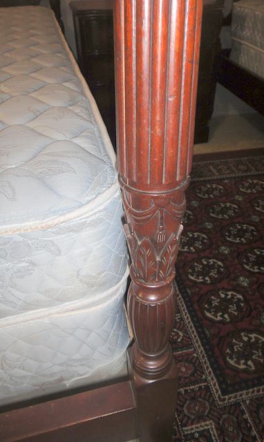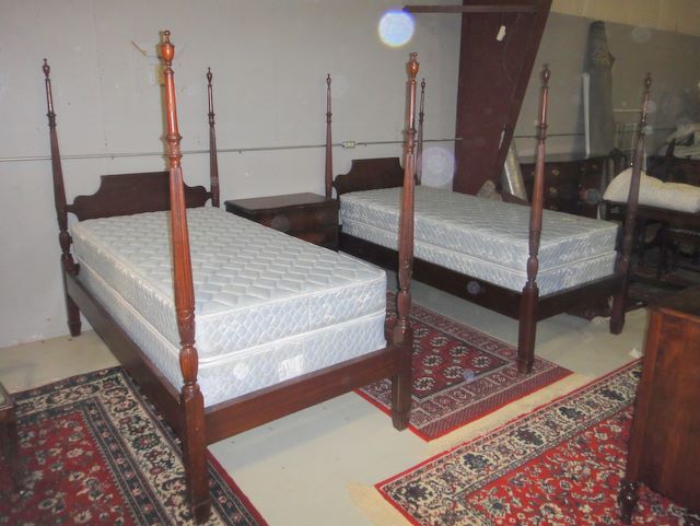 Pair of Vintage Mahogany Rice Beds, includes mattress sets; 67" h. Pair of Vintage Mahogany Rice Beds, includes mattress sets; 67" h.