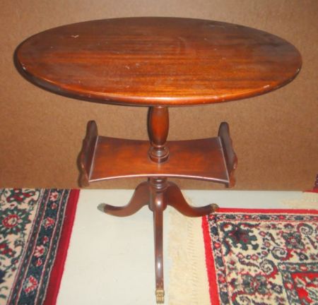 Pair of Vintage Mahogany Duncan Phyfe Style Table, with brass paw feet, with shelf; 25" h., 24" w., 16" d. Pair of Vintage Mahogany Duncan Phyfe Style Table, with brass paw feet, with shelf; 25" h., 24" w., 16" d.