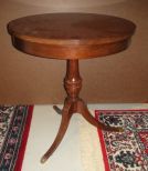 Vintage Mahogany Drum Table with Duncan Phyfe Style Legs, brass paw feet; 26" h., 23 1/2" dia. Vintage Mahogany Drum Table with Duncan Phyfe Style Legs, brass paw feet; 26" h., 23 1/2" dia.