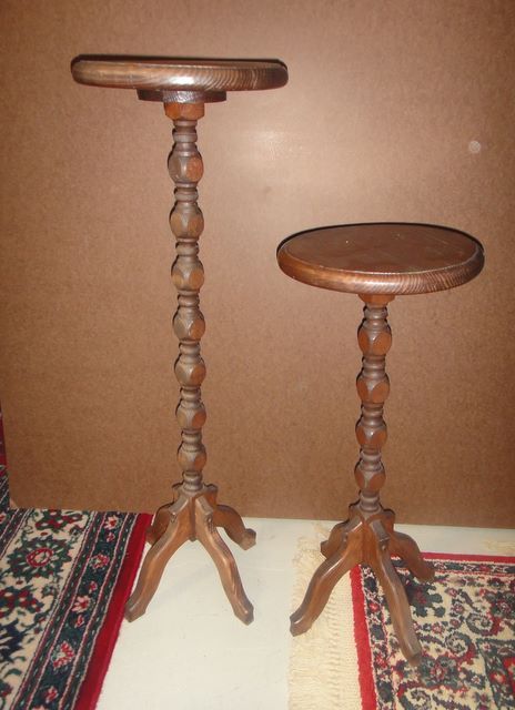 Two Oak Contemporary Fern Stands; 37" and 27" Two Oak Contemporary Fern Stands; 37" and 27"