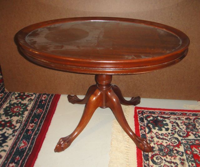 Chippendale Style Coffee Table With Glass Top, oval; 27 1/2" w., 19" d., 18" h. Chippendale Style Coffee Table With Glass Top, oval; 27 1/2" w., 19" d., 18" h.