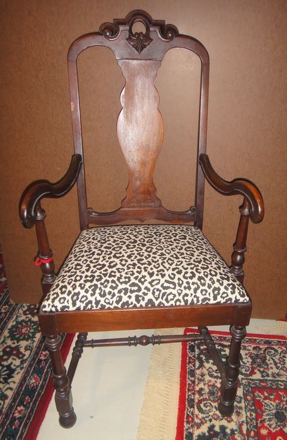 Set of Six Walnut Jacobean Style Chairs, one arm, five sides; 43 1/2" h. Set of Six Walnut Jacobean Style Chairs, one arm, five sides; 43 1/2" h.
