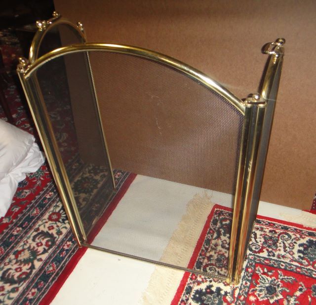 Brass Fire Screen; 34" h., 50 1/2" w. Brass Fire Screen; 34" h., 50 1/2" w.