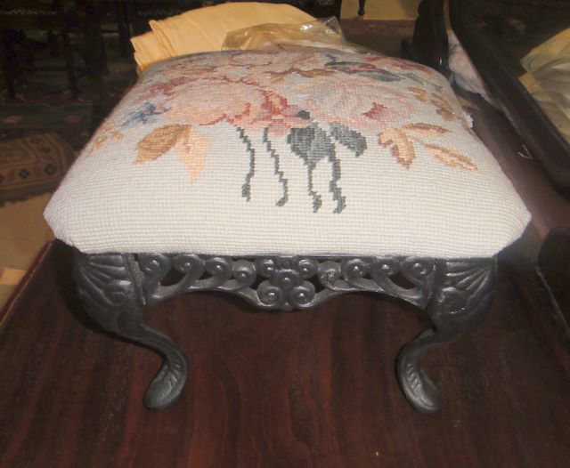 531 Iron Footstool with Needlepoint
