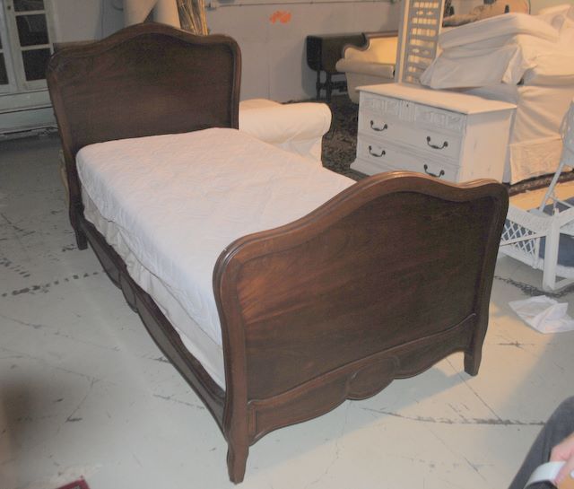 Vintage Walnut French Style Single Rosewood Bed, includes mattress set; 47" h. Vintage Walnut French Style Single Rosewood Bed, includes mattress set; 47" h.