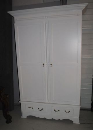 Contemporary Painted White Linen Press or Wardrobe, four interior shelves, two drawers; 85" h., 49" w. Contemporary Painted White Linen Press or Wardrobe, four interior shelves, two drawers; 85" h., 49" w.