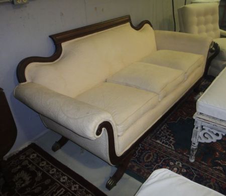 Vintage Duncan Phyfe Style Sofa; 74" w., 31" d., 33 1/2" h. Vintage Duncan Phyfe Style Sofa; 74" w., 31" d., 33 1/2" h.