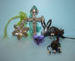 Group of Four Various Decorative Items, including; glass heart, glass star, cross, rabbit chime Group of Four Various Decorative Items, including; glass heart, glass star, cross, rabbit chime