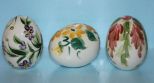 Three Gail Pittman Hand Painted Eggs; 2 3/4" h., one cracked Three Gail Pittman Hand Painted Eggs; 2 3/4" h., one cracked