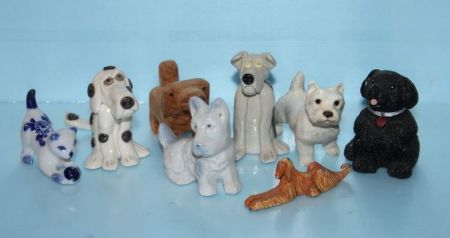Group of Seven Small Dogs and One Cat; 2" h. Group of Seven Small Dogs and One Cat; 2" h.