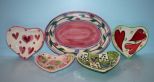Gail Pittman Oval Tray (11") and Four Heart Shaped Dishes (6 1/2" w.) Gail Pittman Oval Tray (11") and Four Heart Shaped Dishes (6 1/2" w.)
